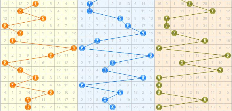 上期开出的和值是7,属于落在第一区间内的小和值,在间隔2期之后,和值又回落到了第一区间内;从之前的走势来看,和值落到第一区间后,还有有可能继续开出在第一区间内,所以本期推荐防和值继续落在第一区间内;综合推荐:9 10 14 16 17 18