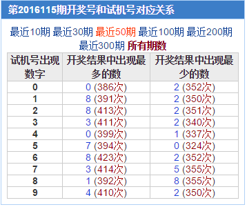 下图是试机号历史上115期开奖号和试机号数据对应关系的综合数据,可以一起关注一下。