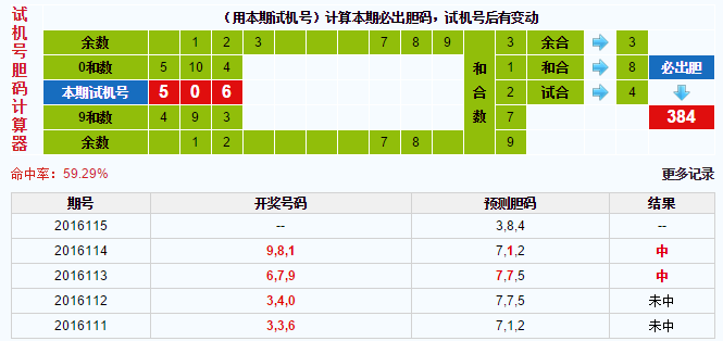 3D试机号胆码计算器:今晚必出胆码384