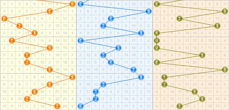 上期开出的和值是10,属于第二区间内的和值;从走势图上看,近几期开出的和值都较为集中,数值都不大,本期推荐关注和值开出在第二区间内的右边;综合推荐:13 14 15 16 17 18