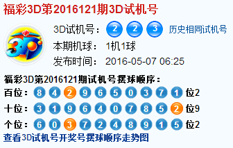 以上数据由彩票之家3d试机号专家北斗星独家提供,请谨慎参考。