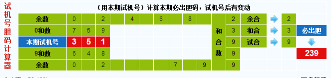 3d试机号胆码计算器:今晚必出胆码239