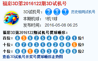 3d第2016122期试机号后北斗星预测分析: