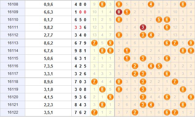 上期的开奖号码是762,开出了大大小和奇偶偶的组六形态,组六形态连开了11期,本期应当防下组三形态的开出,关注组三形态。本期结合综合走势图,推荐胆码:123468。 结合胆码公式,前三期的开奖号码百十个对位相加,取各自的和尾作胆码即134,本期关注134这三个号码;2号球和6号球是上期的开奖号码,近期内均出现过连开的情况,本期关注2号球和6号球的开出;8号球目前间隔1期,且近期内多次作为隔期号开出,本期关注8号球。