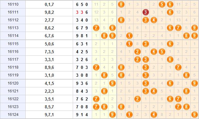 上期的开奖号码是914,开出了大小小和奇奇偶的组六形态,近期组六形态大热,并且没有要终止的势头,本期继续关注组六形态的开出。本期结合综合走势图,推荐胆码:012568。0号球目前间隔1期未开出,近期内0号球多次在间隔1期的时候作为隔期号开出,本期关注0号球的开出;1号球是上期的开奖号码,近期内1号球连开十分频繁,本期看好1号球的重复开出;近期内斜连号开始活跃起来,本期关注2号球的开出;5号球目前遗漏了8期,是所有号码中遗漏期最大的,本期防5号球爆出;6号球目前间隔2期,近期内出现过间隔2期开出,本期关注6号球;8号球目前间隔1期,之前2次开出都是在间隔1期的时候,本期关注8号球的开出。