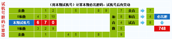 3d试机号胆码计算器:今晚必出胆码748