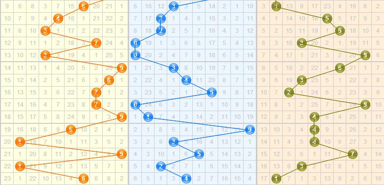 近期10期跨度分别是6-5-5-8-8-5-3-4-2-5,近期跨度前半部分从大跨走向小跨,上期开出一个5跨,跨度有向大跨走的趋势,本期看好大跨,推荐跨度:6、7、8防3跨。