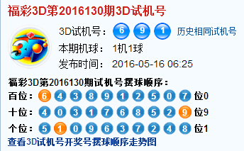 根据以上3d试机号开奖结果分析,今日3d试机号的开奖号码是691,目前有两期没有开出试机号的号码了,根据近30期试机号跟开奖号码的规律来看的话,本期试机号可以防一下,从近期走势来看,建议大家防一下6号球跟9号球,这两个开出一个的可能性比较大。