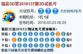 根据以上3d试机号开奖结果分析,今日3d试机号的开奖号码是327,昨天开出了两个试机号的号码,近期的话3d开奖号码开出试机号的号码都是连续开出来的,所以本期继续关注试机号开出的号码,根据近期3d走势来看,237这三个号码都需要关注一下。