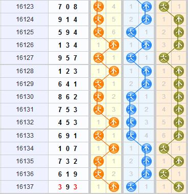 上期的3d开奖结果开出了393,开出了小大小,奇奇奇的组三形态,和值是15,跨度为6,近期组六形态连续爆发开出在上期终于迎来组三的反击,本期继续看好组三继续开出。