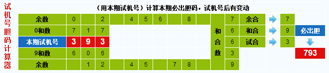 3d试机号胆码计算器:今晚必出胆码793