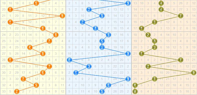 近十期和值分布16-15-12-16-8-12-16-15-11-7,近期和值之间的振幅开始拉大,再次冲向了左边的小和值区域,本期继续看好中部区域和值,防大和值开出,推荐和值:13 14 17 18 20