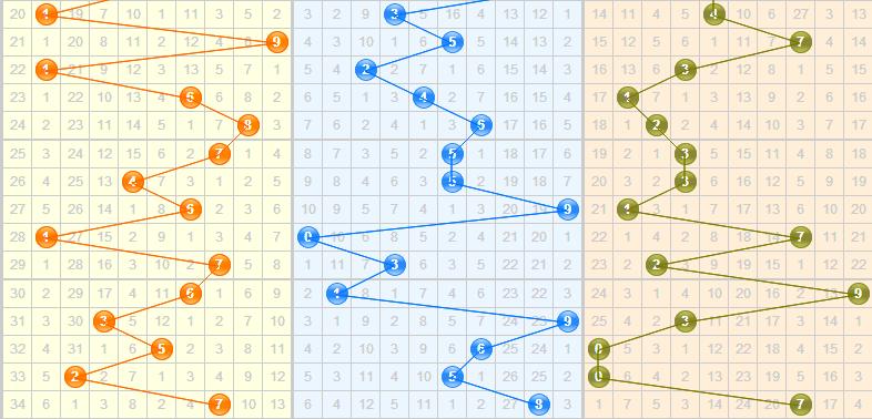 上期开出一个小跨1跨,近10期跨度呈现4-2-8-7-5-8-6-6-5-1的情况,上期跨度一改之前慢慢向左移的频率,一举冲向小跨1,本期看好小跨继续开出,推荐跨度:2 3 4