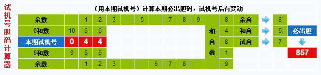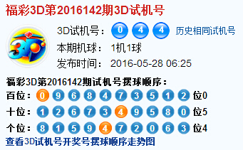根据以上3d试机号开奖结果分析,今日3d试机号的开奖号码是044,近期的话开奖号码开出试机号的号码都有连开的迹象,上一期开出了试机号的一个号码,所以本期的话可以迹象关注试机号的号码,0号球跟4号球都有几率开出来。