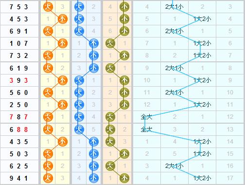 十位:分析近期的十位大小走势来看,十位上近期大小数都呈现连开的状态,本期推荐大小数都关注一下。