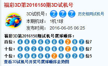 试机号第2016150期3D摆球顺序