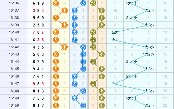 百位:分析近期的百位大小走势,百位上大数持续爆发连开,势不可挡,小数也有反击力量,本期推荐大小号都关注。