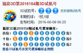 3d第2016154期试机号后北斗星预测分析: