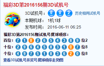 福彩3d第2016156期试机号:002