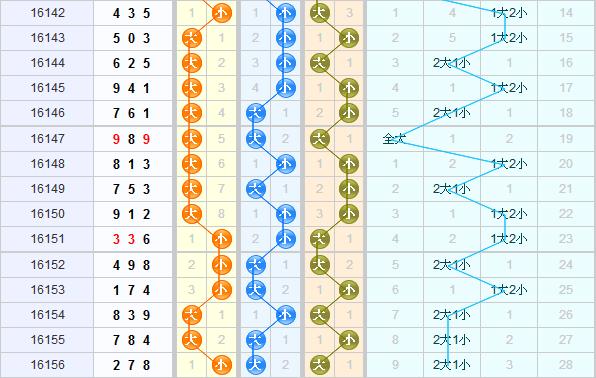 百位:上期开出小数2号,近十期大小比值6:4,根据百位上的大小走势图分析,近期百位上小数出现了连开,大数在爆发连开后开始气势减弱,上期开出了一个小数,本期看好小数继续开出,推荐百位号码0、3、4。