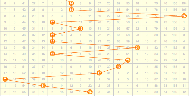 上期开出了和值16,和值在中部偏右的地方,分析近期的和值走势来看,近期的和值依旧会在中部地区开出,上期开出了和值16,本期推荐关注和值范围为10-19,综合来看,本期和值推荐:10 11 14 15 17 18