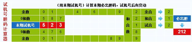 彩票3d试机号胆码计算器推荐212,开出了一个对子,目前对子是隔了2期了,本期对子防一下,1号球是上期的开奖号码,上期开出了一个重复号,所以本期重复号需要关注1个,关注1号球重复;2号球试机号也开出了一个2号球,所以本期2号球是重点关注对象。