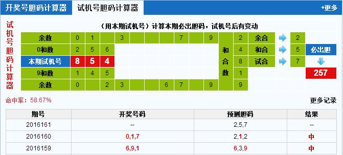 3D试机号胆码计算器:今晚必出胆码257