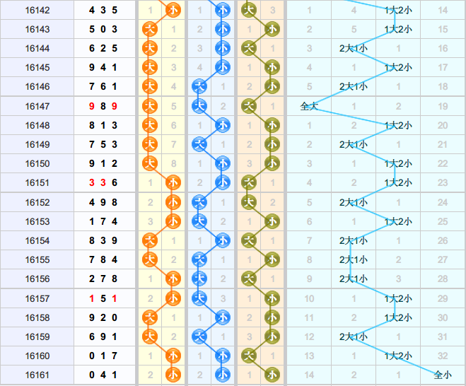 个位:分析近期的个位大小走势来看,近期的个位上,大号有反弹开出的现象,虽然整体的侧重在小号上,不过预测后期大号将会反弹而出,本期个位推荐关注大号的开出。