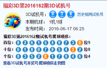 福彩3d试机号开奖结果: