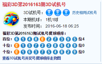 根据以上3d试机号开奖结果分析,今日3d试机号的开奖号码是000,近两期的3d开奖结果都开出了试机号中的其中一个号码,所以本期的试机号需要关注一下,而试机号开出了豹子0,看来本期的独胆看好0号球,另外注意一下对子的开出。