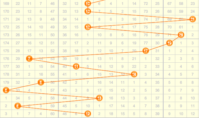 上期的和值开出了和值12,近期的和值集中在第一区域和第二区域之间,结合近期的和值走势来看,近期的和值波动不是很大,根据近期的和值走势来看,本期和值的关注点在第二区域内,本期和值推荐:9 10 11 14 15 18