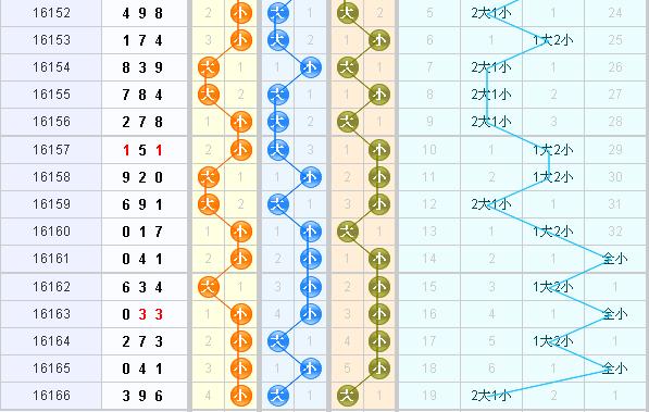 上期开出了偶奇奇组合,从奇偶走势图上看,近期奇数和偶数出号力算是实力相当,奇数略强一些,上期开出2奇1偶组合,本期看好偶数出号。