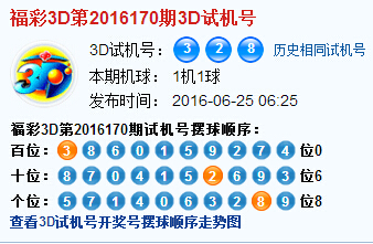 3d第2016170期试机号后北斗星预测分析: