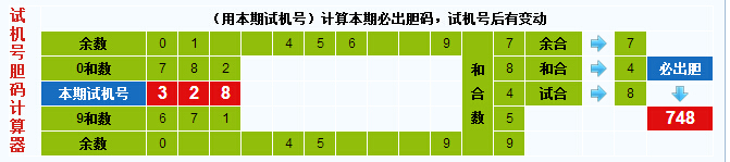 3d试机号胆码计算器:今晚必出胆码748