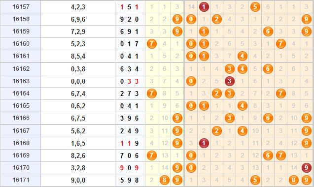 个位:上期个位开出偶数,从近期个位走势图来看,最近几次个位上偶数的开出都没能持久,都没有出现连开,所以本期看好个位上奇数的开出。