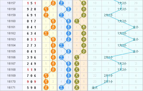 百位:上期开出大数5号,近十期大小比值4:6,根据百位上的大小走势图分析,近期百位上大数在距离6期以后开出了3期的连开,期间一直是小数的连续爆发开出6期,本期看好小数拉回开出,推荐百位号码0、2、4。