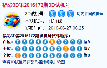 根据以上3d试机号开奖结果分析,今日3d试机号的开奖号码是006,0号球目前是隔了1期了,而且试机号是开出了2个0,本期独胆关注0号球;6号球目前是隔了2期了,是上期开奖号码的邻码,而且上一次的6号球也是在隔了2期的时候开出来的,所以本期6号球需要关注。