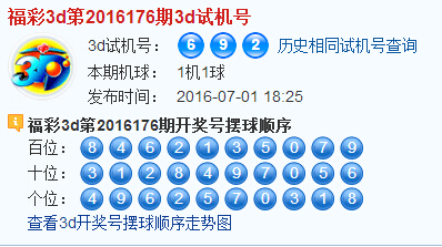 以上数据由彩票之家3d试机号专家北斗星独家提供,请谨慎参考。