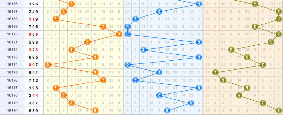 百位分析:分析近期的百位走势图来看,上期的百位上开出了6号球,从近期的百位走势来看,近期的百位大小走势走向了大号,本期重点关注大号开出,本期推荐百位:045789