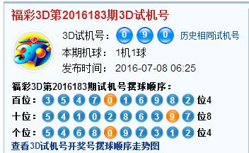 开奖号第2016183期3D摆球顺序