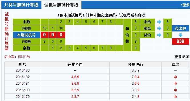 3D试机号胆码计算器:今晚必出胆码839