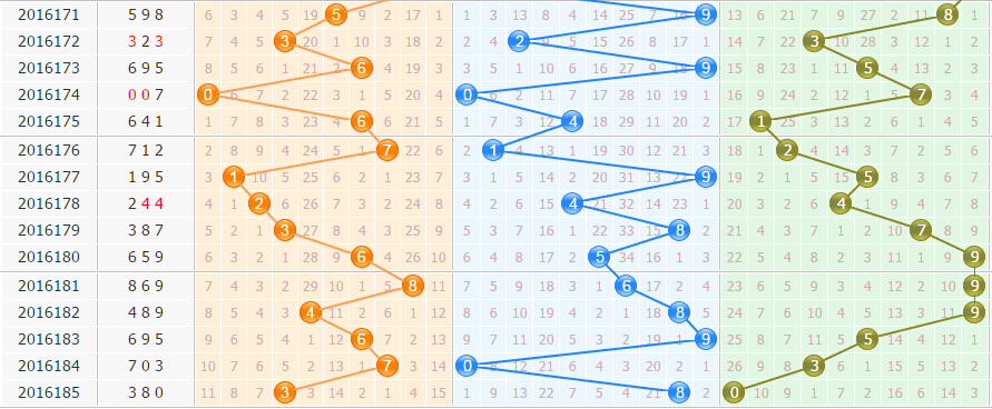 个位分析:上期开出了0号球,开出了一个冷号,遗漏了26期的冷号,根据开冷号之后的一个规律,接下来会开出热号,也就是遗漏期数比较小的号码,所以本期重点看好遗漏期数比较小的号码。