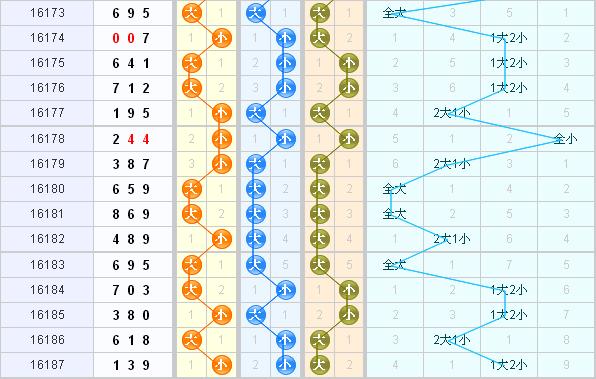 上期的3d开奖结果开出了139,开出小小大,奇奇奇的组六形态,和值是13,跨度为8,近期组六爆发开出多期,还有继续爆发的势头,本期继续关注组六。