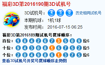 福彩3d第2016190期试机号:450