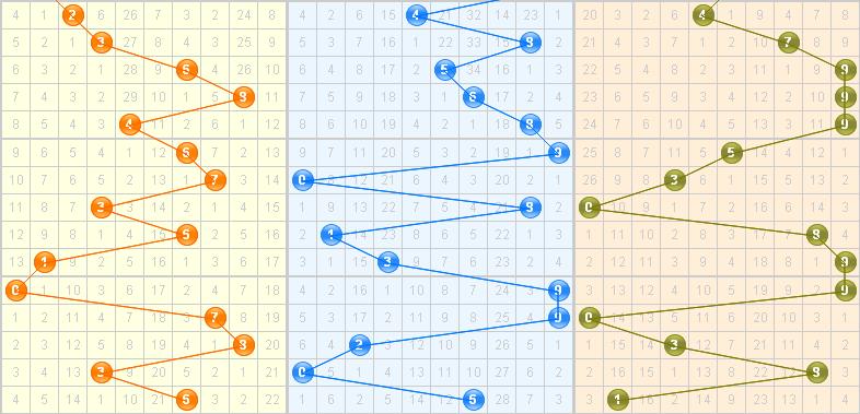 和值分析:上期开出和值13点,近期和值稳定在第二区间内徘徊,根据以往走势分析,本期继续看好第二区间和值,防小和值开出,推荐和值:8 10 12 14