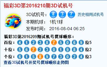 今日3d试机号的开机号码是837,试机号胆码计算器推荐号码739,本期试机号胆码计算器和试机号开机号都看好3号球,3号球上期开出1期,结合走势图来看,近期3号球走热,所以本期继续看好3号球拖号开出,上期开奖号码开出023,开出偶偶奇,小小小,大小方面,本期大号球肯定会回补开出,所以本期重点可关注大号球的开出,奇偶方面,本期试机号和试机号胆码计算器均已奇数号球为主,地球人都知道偶偶偶连续31期未开出了,如此看来,本期偶偶偶可能再次无缘开出了,本期还是看好奇数号球的开出,重点可关注偶奇奇和奇偶奇的开出,类型方面,上期开出组六,本期继续看好组六的开出。
