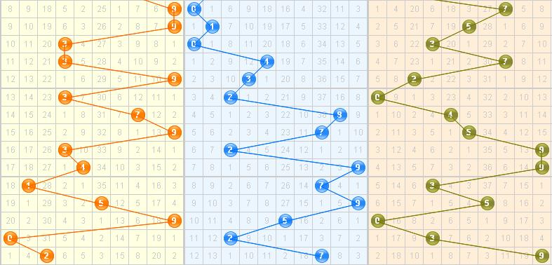 上期开出一个大跨7跨,近期跨度的振幅增大,小跨出现了几次袭击,预计本期落点走向小跨区域,本期关注跨度2、4防5跨。