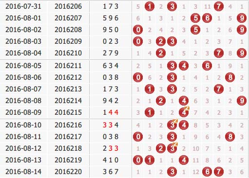 3d第16220期开奖结果是367,大小形态开出了小大大,奇偶形态是奇偶奇,和值为16,和尾为6,开出了001路号码。