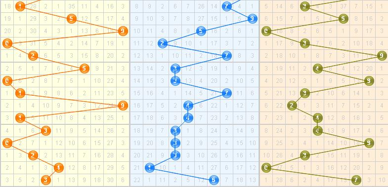 跨度分析:近期跨度振幅较大,上期开出了重复跨度4,本期看好跨度大跨走向,推荐6、7跨防2。