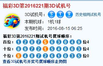 彩票3d试机号胆码计算器推荐393,3号球是上期的开奖号码,也就是重复号,重复号需要关注;9号球上面分析了,本期不是很看好。